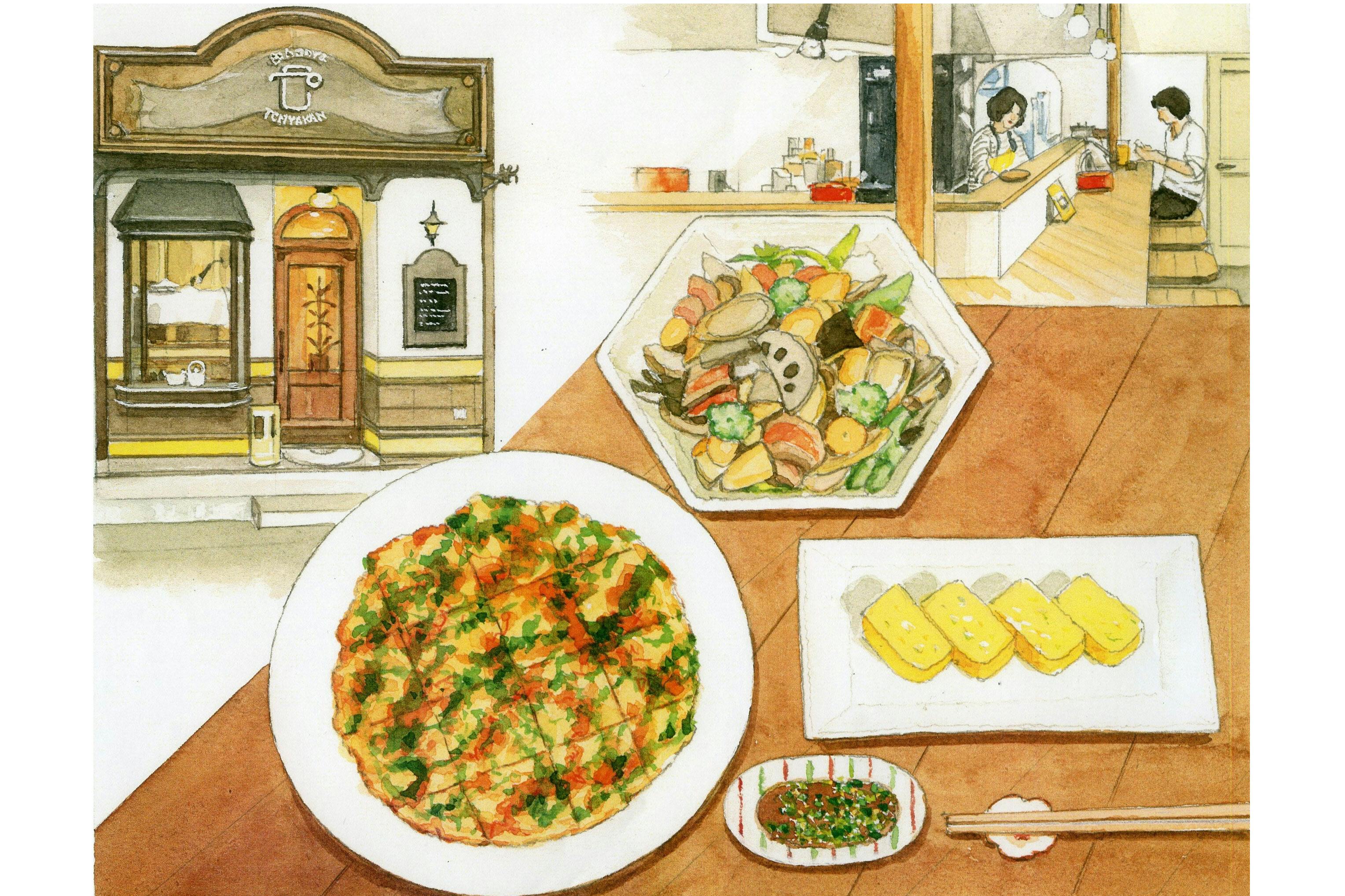大分県のご当地グルメのイラストマップです まぐろやイカの食材や地元の名産品で作った料理のイラストです 公式 イラストレーター アライヨウコ Webサイト
